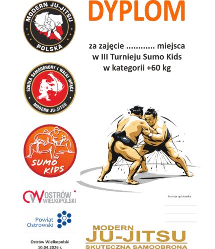 W piątkowe popołudnie odbył się III Turniej Sumo Kids. Rywalizacja sportowa odbyła się w 6 grupach z podziałem na kategorie wagowe i wiekowe. Walki toczyły się w formule „wypchnij poza pole lub obal” do pięciu zdobytych punktów lub przewagi punktów w określonym czasie. Wielkie gratulacje dla wszystkich startujących za rywalizację w duchu fair play oraz zaprezentowany poziom sportowy. Wyniki rywalizacji: